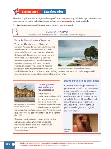 110 Ámbito: Participación social | Aprendizaje esperado: Explora el periódico y elige una noticia relevante.