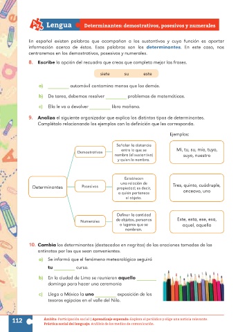 Lengua Determinantes: demostrativos, posesivos y numerales