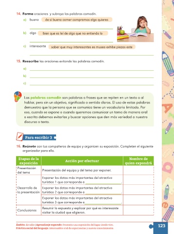 15. Reescribe las oraciones evitando las palabras comodín.