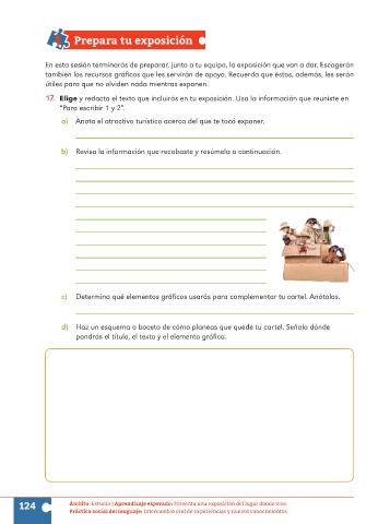 17. Elige y redacta el texto que incluirás en tu exposición. Usa la información que reuniste en