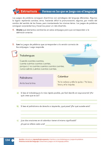 134 Ámbito: Literatura | Aprendizaje esperado: Practica y crea trabalenguas y juegos de palabras.