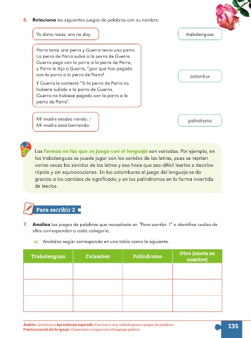 Ámbito: Literatura | Aprendizaje esperado: Practica y crea trabalenguas y juegos de palabras. 135