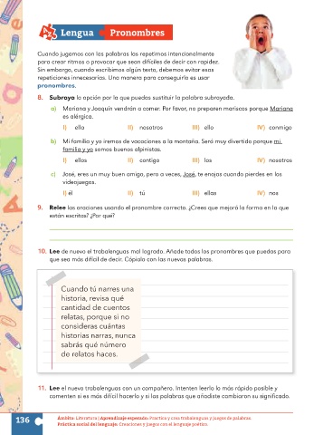 136 Ámbito: Literatura | Aprendizaje esperado: Practica y crea trabalenguas y juegos de palabras.