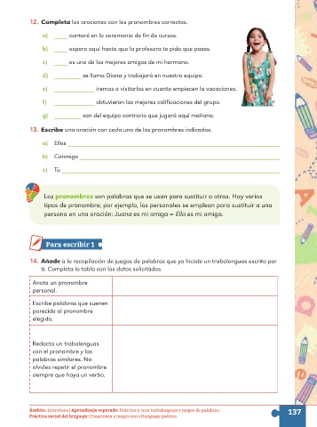 13. Escribe una oración con cada uno de los pronombres indicados.