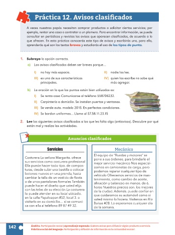 que ofrecen. En esta práctica conocerás este tipo de avisos y escribirás uno, para ello,
