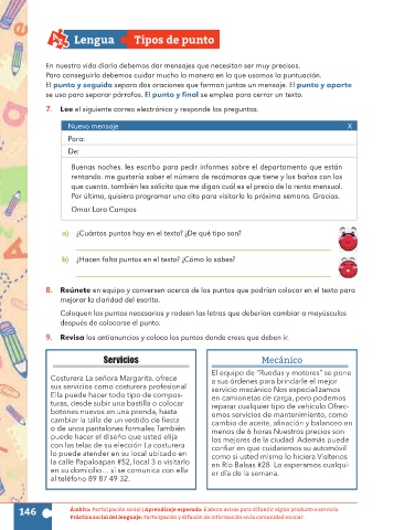 a) ¿Cuántos puntos hay en el texto? ¿De qué tipo son?