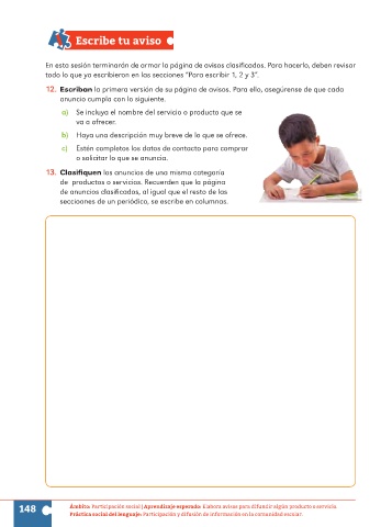 148 Ámbito: Participación social | Aprendizaje esperado: Elabora avisos para difundir algún producto o servicio.