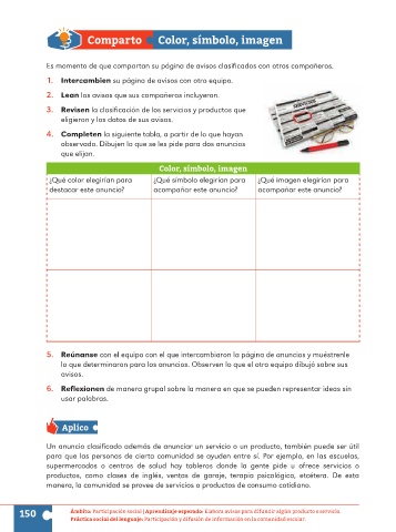 150 Ámbito: Participación social | Aprendizaje esperado: Elabora avisos para difundir algún producto o servicio.