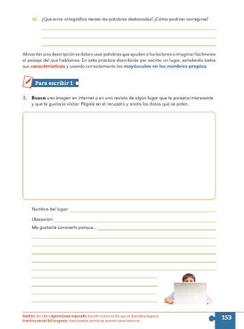 Ámbito: Estudio | Aprendizaje esperado: Escribe textos en los que se describen lugares. 153