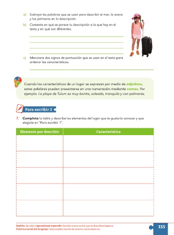 Ámbito: Estudio | Aprendizaje esperado: Escribe textos en los que se describen lugares. 155