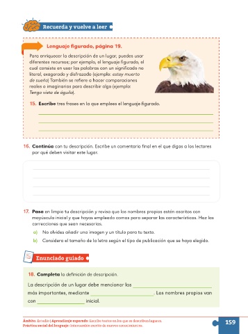 Ámbito: Estudio | Aprendizaje esperado: Escribe textos en los que se describen lugares. 159