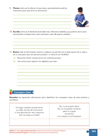 Ámbito: Estudio | Aprendizaje esperado: Escribe textos en los que se describen lugares. 161