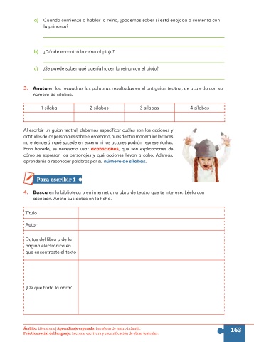 Ámbito: Literatura | Aprendizaje esperado: Lee obras de teatro infantil. 163