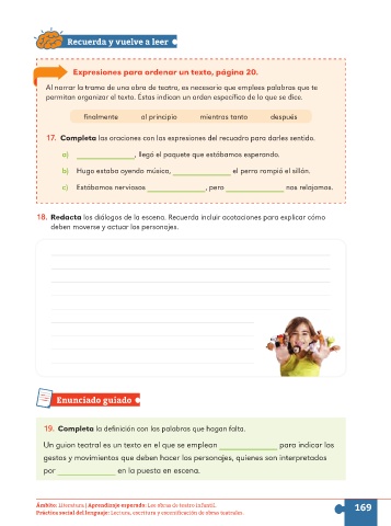 Ámbito: Literatura | Aprendizaje esperado: Lee obras de teatro infantil. 169