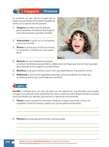 170 Ámbito: Literatura | Aprendizaje esperado: Lee obras de teatro infantil.