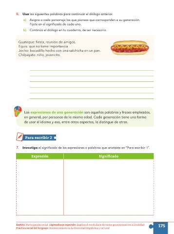 Ámbito: Participación social | Aprendizaje esperado: Explora el vocabulario de varias generaciones en la localidad. 175