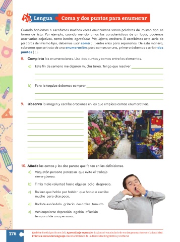 9. Observa la imagen y escribe oraciones en las que emplees comas enumerativas.