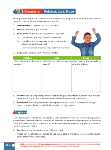 180 Ámbito: Participación social | Aprendizaje esperado: Explora el vocabulario de varias generaciones en la localidad.