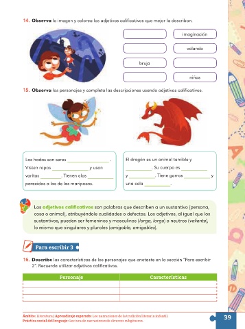 15. Observa los personajes y completa las descripciones usando adjetivos calificativos.