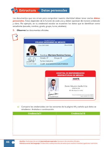 46 Ámbito: Participación social | Aprendizaje esperado: Reconoce documentos oficiales.