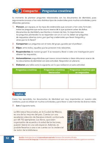 52 Ámbito: Participación social | Aprendizaje esperado: Reconoce documentos oficiales.