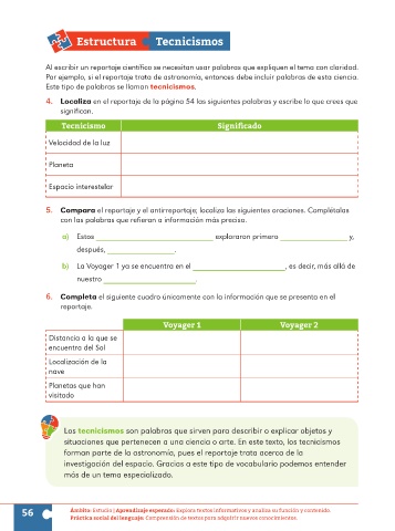 4. Localiza en el reportaje de la página 54 las siguientes palabras y escribe lo que crees que