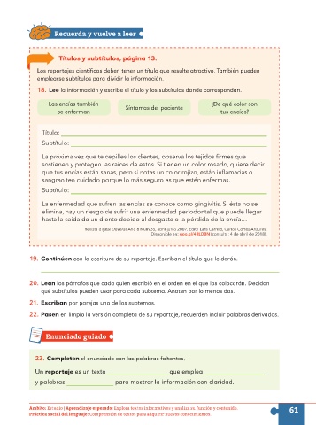 18. Lee la información y escribe el título y los subtítulos donde correspondan.