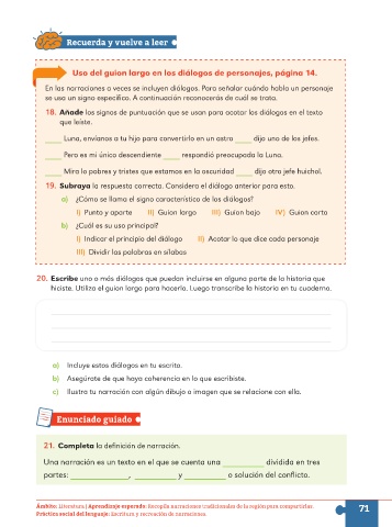 Ámbito: Literatura | Aprendizaje esperado: Recopila narraciones tradicionales de la región para compartirlas. 71