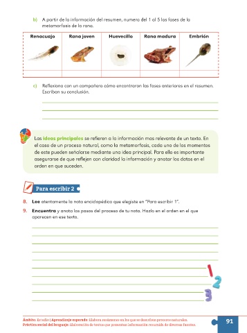Ámbito: Estudio | Aprendizaje esperado: Elabora resúmenes en los que se describen procesos naturales. 91