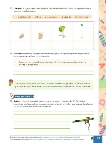 Ámbito: Estudio | Aprendizaje esperado: Elabora resúmenes en los que se describen procesos naturales. 93