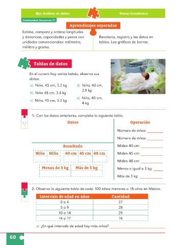 a) Niño, 45 cm, 3.2 kg d) Niña, 40 cm,