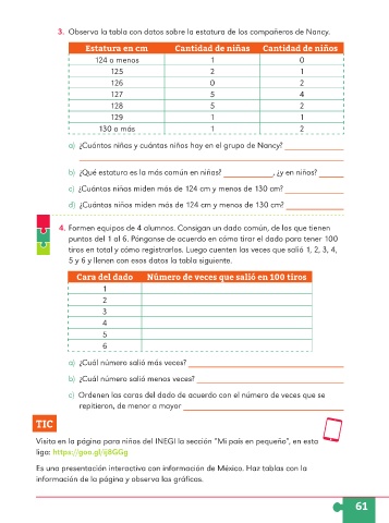 3. Observa la tabla con datos sobre la estatura de los compañeros de Nancy.
