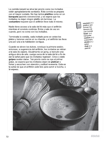 costumbre requiere que el anfitrión lleve todo él mismo. courses (n.):