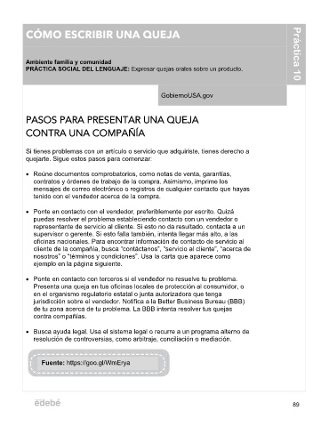 PRÁCTICA SOCIAL DEL LENGUAJE: Expresar quejas orales sobre un producto.