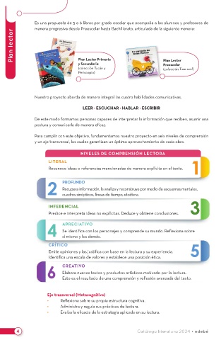 Es una propuesta de 5 o 6 libros por grado escolar que acompaña a los alumnos y profesores de