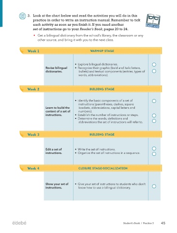 3. Look at the chart below and read the activities you will do in this