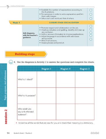 4. Use the diagrams in Activity 1 to answer the questions and complete the charts.