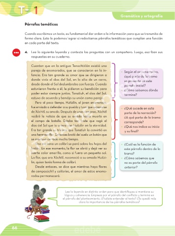 4. Lee la siguiente leyenda y contesta las preguntas con un compañero. Luego, escriban sus