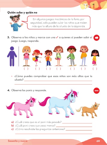 3. Observa a los niños y marca con una ✓ a quienes sí pueden subir al