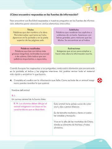 4. Completa el cuadro con la información que falta. Como se trata de un animal imagi-