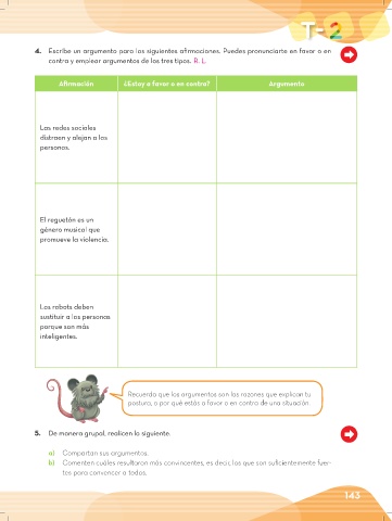 4. Escribe un argumento para las siguientes afirmaciones. Puedes pronunciarte en favor o en