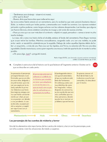 4. Completa la estructura de la historia con lo que leíste en el fragmento anterior. Guíate con lo