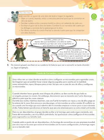 2. De manera grupal, escriban en su cuaderno la historia que van a convertir en texto dramáti-