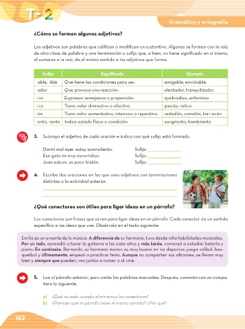 3. Subraya el adjetivo de cada oración e indica con qué sufijo está formado.