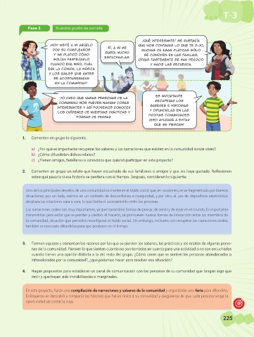 3. Formen equipos y comenten las razones por las que se pierden los saberes, las prácticas y los relatos de algunas perso-