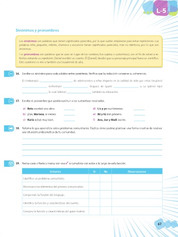 16. Escribe un sinónimo para cada palabra entre paréntesis. Verifica que la redacción conserve su coherencia.