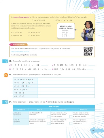 Signos de Comprendo que los signos Identifico que el signo de Resuelvo expresiones