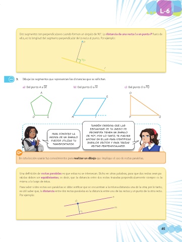 Dos segmentos son perpendiculares cuando forman un ángulo de 90°. La distancia de una recta l a un punto P fuera de