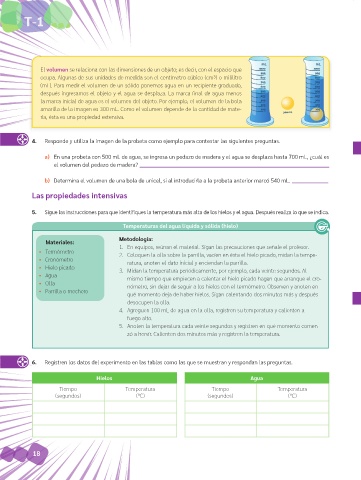 5. Sigue las instrucciones para que identifiques la temperatura más alta de los hielos y el agua. Después realiza lo que se indica.