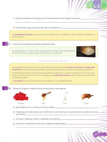 8. Observa las imágenes y subraya la sustancia más viscosa. Luego responde.
